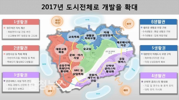 행정구역 경계를 뛰어넘어 충청권, 더 나아가 중부권의 동반발전을 견인해 나갈 수 있는 역할을 하는 것이 행복도시 건설의 완수를 의미한다.