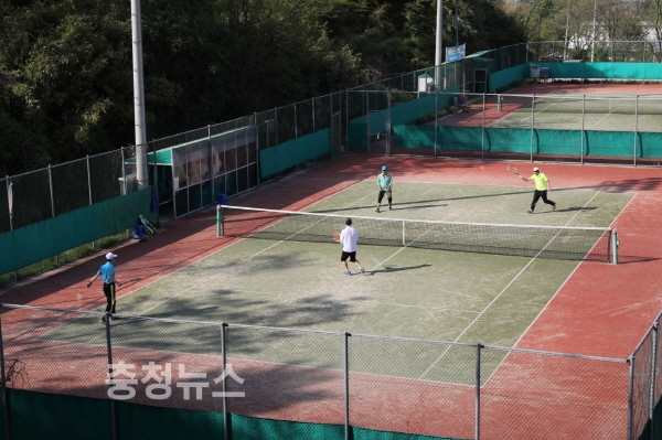 계룡시청 옆 테니스 코트에서 운동중인 시민들