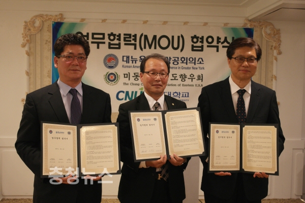 충남대와 대뉴욕지구한인상공회의소, 미동부충청도향우회가 산학협력 활성화를 위해 업무협약을 체결했다.