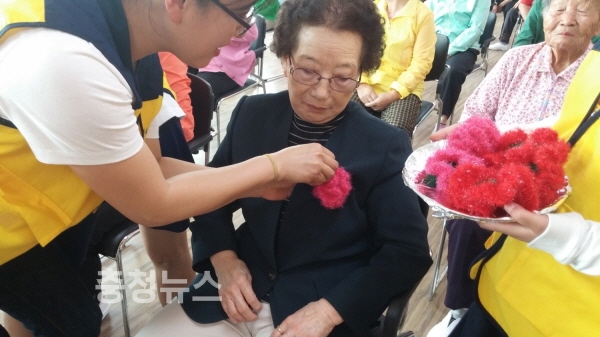 충남 서천군 마산면(면장 이명근)은 지난 4일 서천군 자원봉사센터와 마산면 자원봉사 거점센터가 주관이 되어 마산어르신들에게 정성 가득한 카네이션을 직접 달아드리는 행사를 진행했다.