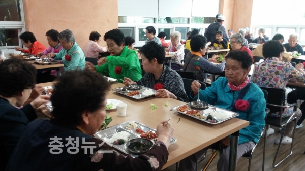 카네이션 달아드리는 행사 후에는 문화활력소에서 준비한 풍성한 음식들로 어르신들의 점심식사를 대접하여 어버이날을 맞는 어르신들에게 큰 기쁨을 주었다.