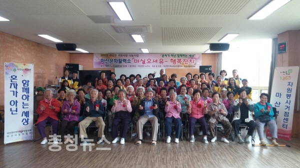 마산문화활력소 행복경로당에 참석하시는 관포리 김옥희 어르신은 “농촌에서는 농사일로 항상 바쁜데 젊은사람들이 웃는 얼굴로 나이든 사람을 찾아주고, 챙겨주고, 다양한 행사를 준비해 즐겁게 해줘서 항상 고맙다”고 말했다.