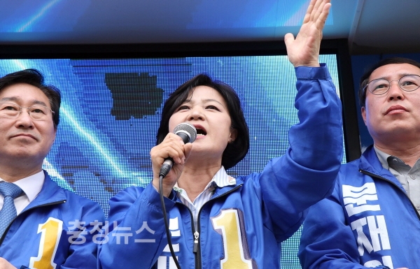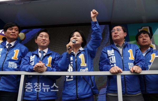 더불어민주당 추미애 대표가 8일 다시 한번 대전을 찾아 문재인 후보 지지에 대한 총력전을 펼쳤다.