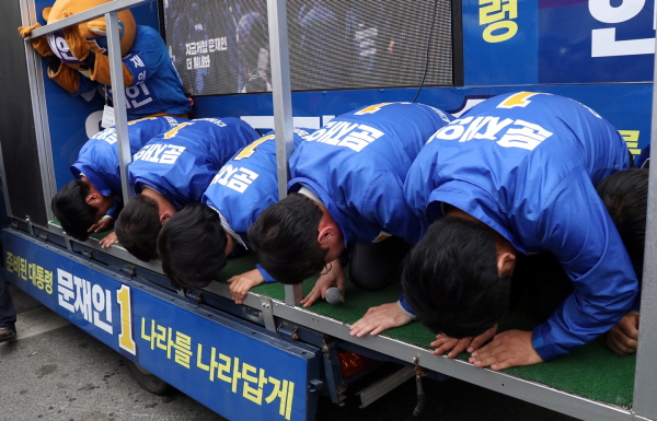 추 대표를 비롯한 대전 지역위원장들이 모두 모인 이날 유세에는 대전 중앙시장을 찾아 시민들에게 큰절을 올리며 "효도하는 정당이 되겠다"고 호소했다.