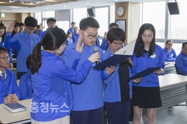 이날 결단식에는 최교진 세종시교육감, 이춘희 세종시장, 고준일 세종시의회의장, 이태환 세종시의회 교육위원회위원장 등을 비롯한 참가선수 41명과 지도교사, 감독·코치진이 참석했다.