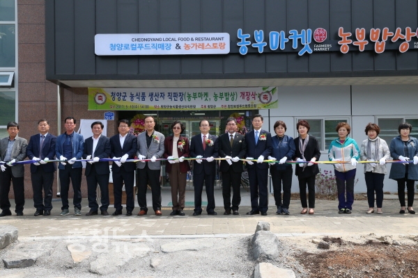 ‘행복한 로컬푸드 100만원 받는 1000농가 육성’이라는 슬로건으로 운영되는 청양군농식품생산자직판장은 지난 2015년 충남도 공모사업으로 선정돼 2016년 7월 착공, 2017년 2월 연면적 755㎡로 준공됐으며, 4월 농가레스토랑(농부밥상) 및 로컬푸드직매장(농부마켓)을 임시 개장했다.