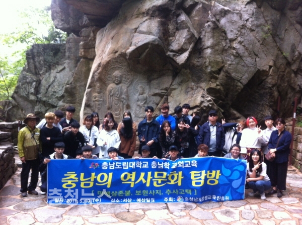 충청남도평생교육진흥원과 전문대학육성특성화사업단 주최로 실시한 이날 교육은 ‘백제의 미소에서 추사고택까지’를 주제로, 서산 마애삼존불과 보원사지, 예산 추사고택을 방문하는 순으로 진행됐다.