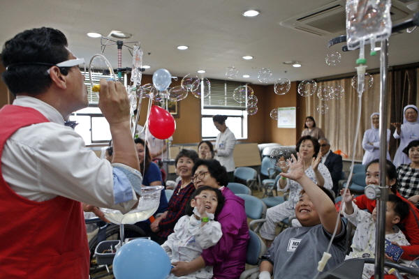 이날 행사에서는 매직 버블쇼, 풍선아트 등이 진행돼 병원생활에 지쳐 있는 환아와 보호자들에게 즐거운 시간을 선사했다.