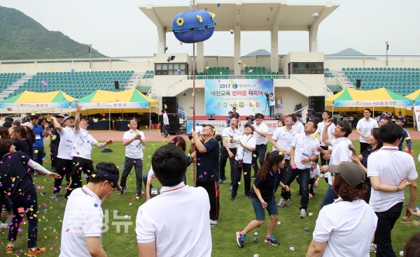 대전교육청(교육감 설동호)은 지난 13일 한밭대학교 종합운동장에서 교육청 개청 이래 처음으로 본청, 직속기관, 교육지원청 전직원이 소통하고 화합하기 위한 체육대회를 개최했다.