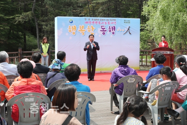 지역 내 4개 대학교 학생들로 구성된 봉사단원들은 ▲녹색나눔 숲 힐링 체험 ▲항공 승무원 체험 프로그램(배재대학교) ▲ 시력보호 검안 프로그램(건양대학 교) ▲네일아트․타투 체험 프로그램(대전과학기술대학교) ▲ 어르신 스포츠 마 사지 프로그램(목원대학교) 등 학과 특성을 살린 맞춤형 봉사활동을 선보였다.