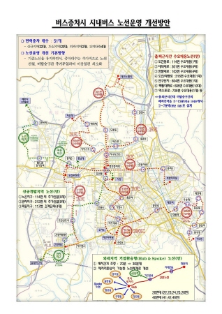 - 기성동 Hub연계 노선신설 : 대전역~역전시장~중앙로~계백로~가수원4~흑석4