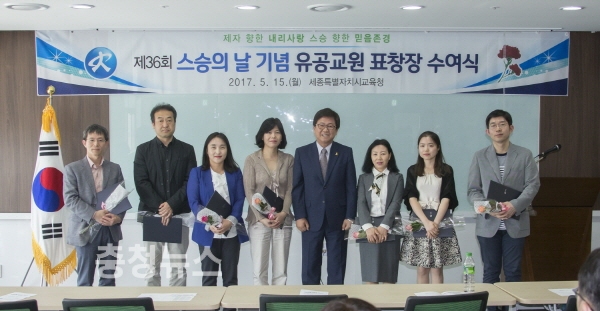 세종시교육청(교육감 최교진)은 제36회 스승의 날을 맞이해 15일 본청 4층 대회의실에서 세종 교육 발전을 위해 사명감을 갖고 헌신․전념해 온 유공교원을 대상으로 표창장을 수여했다.