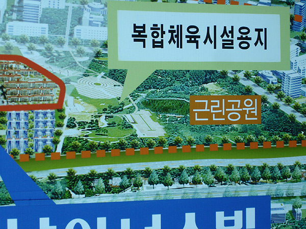 문제는 금실건설측이 아파트 단지 옆에 확보한 '복합체육시설 용지'를 허가를 거쳐야 하는 '골프장 예정지'로 과대과장 광고를 하고 있어 입주민들의 재산 피해 등이 우려되고 있다.