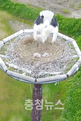 올해 첫 자연 부화에 성공한 새끼 황새 2마리가 지난 12일과 14일 둥지를 떠나 세상으로 첫 날갯짓을 시작한 데 이어 자연 방사한 황새가 올해 벌써 세 번째 자연 부화에 성공하며 예산군이 청정지역으로 거듭나고 있다.