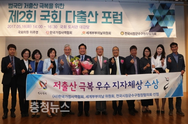 ‘저출산 극복 우수지자체상’은 전국시장군수구청장협의회와 민간단체인 세계부부의 날 위원회, 사단법인 한국가정사역협회가 공동으로 출산정책 우수 지방자치단체에 수여하는 상이다.