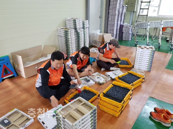 농협 충남지역본부(본부장 유찬형) 임직원들은 16일 동서천농협(조합장 오영환)‘블루베리’ 공선출하회를 찾아 선별·포장·상하차에 이르는 일련의 농산물유통과정 체험을 통해 산지농협의 부족일손을 지원하고 현장의견 청취와 농가 및 농협직원 등 관계자를 격려 했다고 밝혔다.