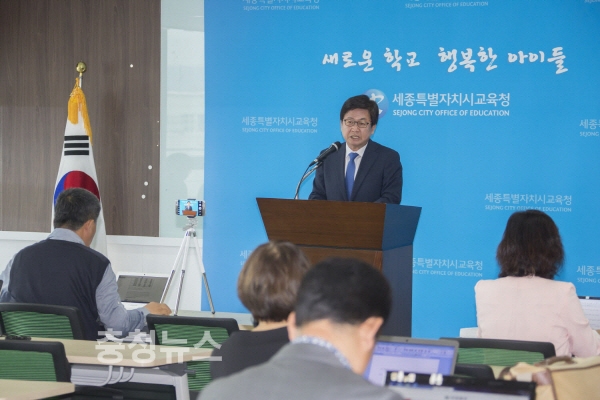 브리핑하는 최교진 세종시교육감 / 충청뉴스 최형순 기자