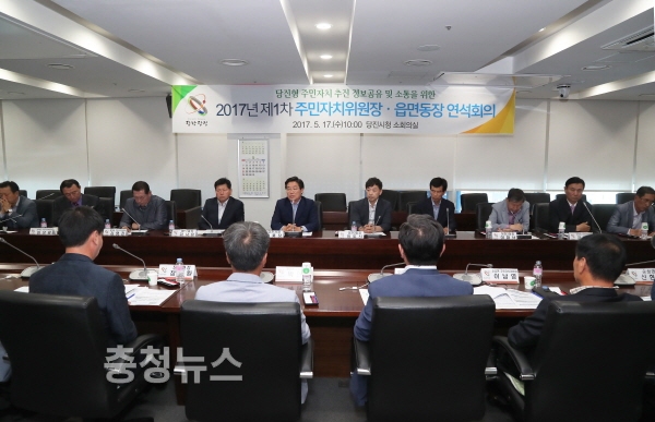 충남 당진시는 17일 시청 소회의실에서 14개 읍면동 주민자치위원장과 읍면동장이 함께 참석하는 올해 첫 연석회의를 개최하는 등 대선으로 미뤘던 당진형 주민자치 사업을 본격화 했다.