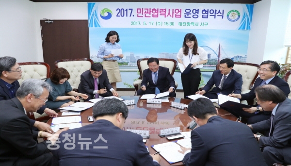구는 17일 구청 다목적실에서 대전복지재단 등 9개 기관이 참여한 가운데 민관협력사업 운영협약을 체결했다.