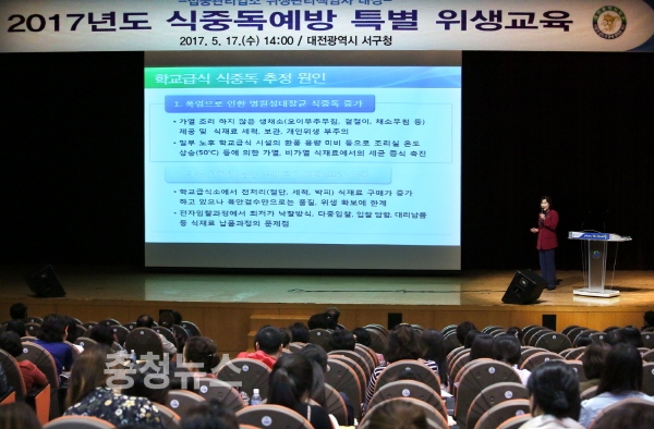 대전 서구(구청장 장종태)는 17일 구청 대강당에서 기온변화가 심한 봄철과 무더운 여름에 대비해 집중관리 대상 업소 위생관리책임자를 대상으로 식중독 예방 특별 위생교육을 했다고 밝혔다.