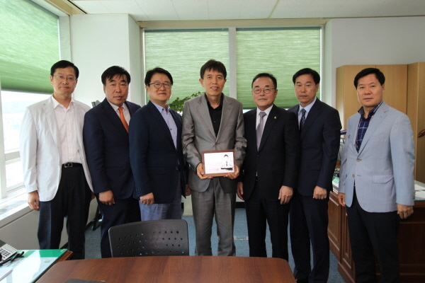 이날 시 건설관리본부를 방문한 정인수 대전시회장은 2015년 7월 부임해 경기침체로 어려움을 겪는 지역건설업체 보호와 육성을 위해 노력해 온 이강혁 본부장에게 고마운 마음을 담아 감사패를 전달했다.