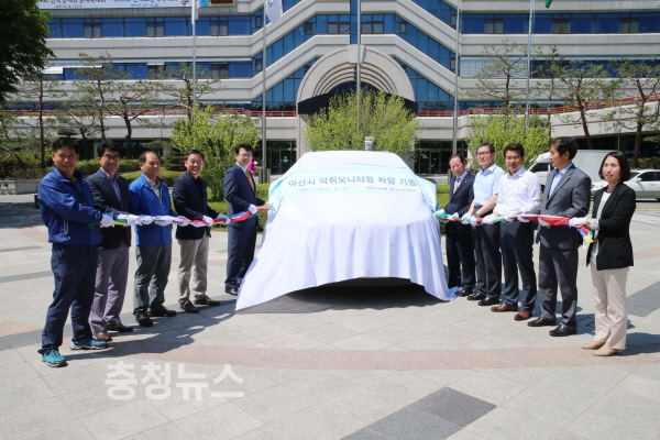 충남 아산시(시장 복기왕)는 관내 축산시설 및 산업시설의 고질적인 악취문제에 대처하기 위해 연초 악취민원 전담팀을 구성한데 이어 악취감시의 기동성을 확보하기 위해 지난 17일 악취감시차량 가동식을 가졌다.