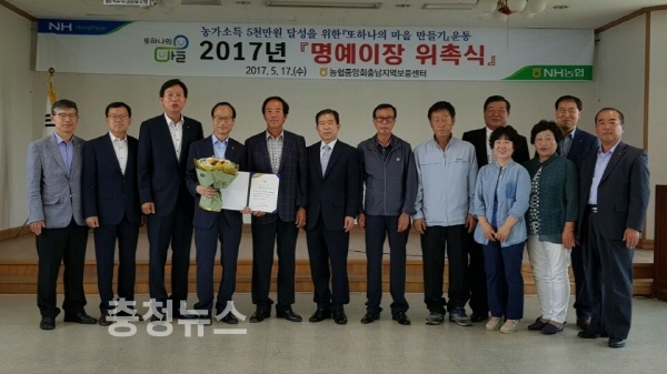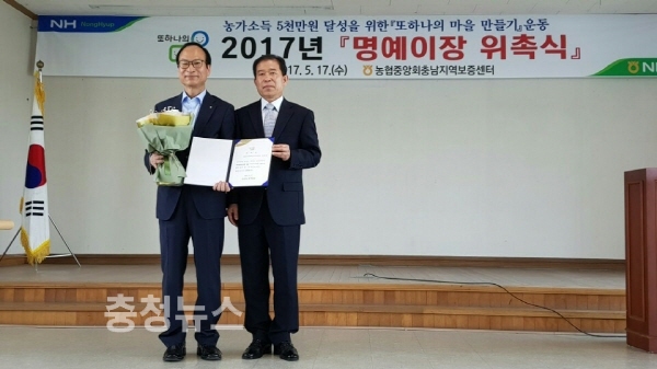 농협 충남지역보증센터(센터장 김선묵)는 지난 17일 논산시 부적면 부적농협 회의실에서 임재인 부적면장으로부터 신교3리 명예이장 위촉장을 받고, 농가소득 5천만원 달성을 위한 ‘또 하나의 마을 만들기’ 운동의 명예이장으로서 본격적인 활동을 시작했다.