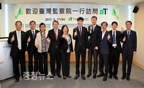 한국농수산식품유통공사(사장 여인홍)는 지난 17일 서울 양재동 aT센터에서, 대만의 농업발전을 위하여 한국 농수산식품 산업 발전현황을 청취하고 aT 사업을 벤치마킹하고자 한국을 찾은 대만 감찰원 일행을 맞이하였다고 밝혔다.