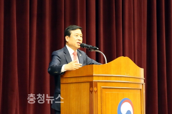 이충재 행복청장이 지난 18일 정부세종컨벤션센터 4층 국제회의장에서 ‘글로벌 종합사업관리 심포지엄’ 본격 개최에 앞서 환영사를 하고 있다.