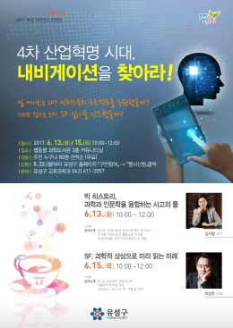 대전 유성구(구청장 허태정)가 다음달 6월 13일과 15일 오전 10시 별똥별 과학도서관에서 ‘2017 유성 사이언스 티타임, 4차 산업혁명 시대, 내비게이션을 찾아라!’를 주제로 강연을 연다.