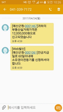 예산군, 부동산거래신고 가격 및 등기신청기간 SMS 문자전송!