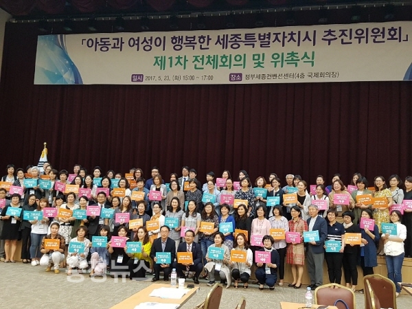 세종시(시장 이춘희)가 23일 정부컨벤션센터에서 ‘아동과 여성이 행복한 세종특별자치시 추진위원회’ 제1차 전체회의를 가졌다.