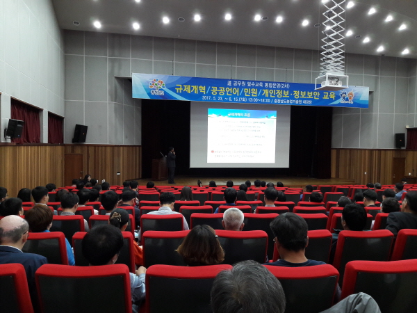 충남도가 23일부터 다음달 15일까지 7차례에 걸쳐 도 농업기술원 대강당에서 규제개혁 등 5개 분야 통합 직원교육을 실시한다.