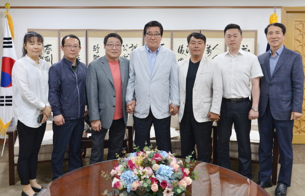 윤석우 충남도의회 의장은 23일 도의회 접견실에서 강승구 미국 샌프란시스코 한인회장과 환담을 나눴다.