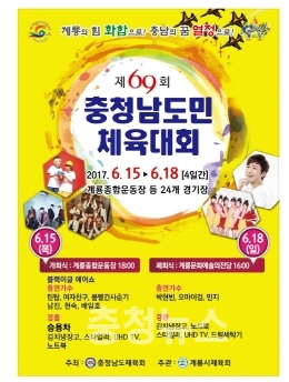 한편, 오는 6월 15일부터 18일까지 4일간 열리는 제69회 충청남도민체육대회는 도내 15개 시ㆍ군 7000여 명의 선수단이 육상ㆍ수영ㆍ축구ㆍ테니스ㆍ탁구 등 19개 정식 종목과 일반부 씨름, 초등부 테니스 등 2개의 시범종목에서 선의의 경쟁을 펼치게 된다.