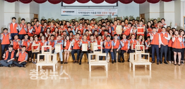 이날 진행된 봉사활동에는 한국타이어 대표이사 서승화 부회장과 본사 임직원 120명이 참석한 가운데 아동형 좌식책상 및 책꽂이형 공간 박스 등의 가구를 직접 제작하는 시간을 가졌다.