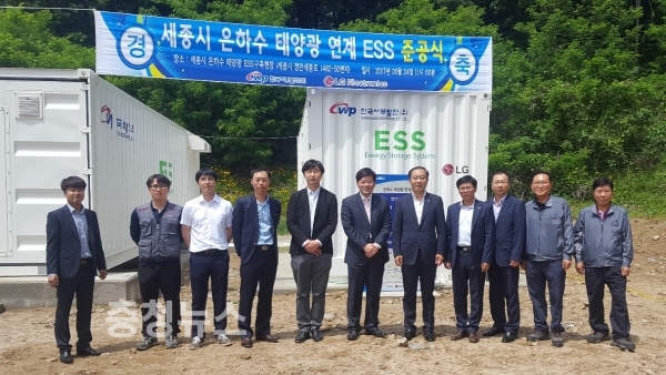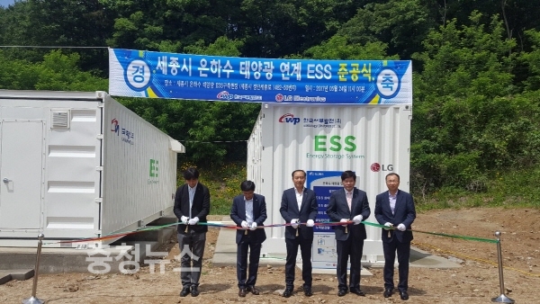 한국서부발전(사장 정하황)은 세종시 은하수 태양광에 ESS(에너지 저장장치)를 설치하고 24일 임직원 및 제작사인 LG 전자 관계자 등이 참석한 가운데 준공식을 개최했다.