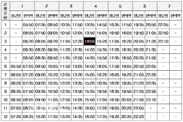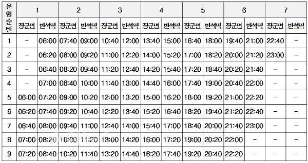 장군면~고운ㆍ아름동, 새롬동, 첫마을, 세종터미널~반석역