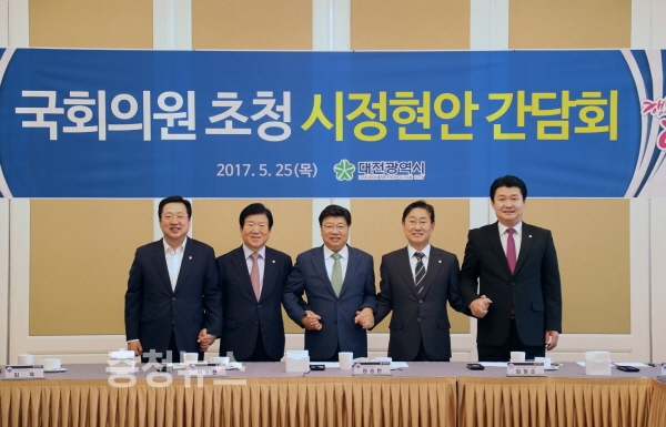대전시(시장 권선택)는 25일 국회에서 대선 이후 신정부 출범에 맞춰 대선공약의 국정 과제 반영과 2018년 국비확보에 선제적으로 대응하기 위해 '국회의원 초청 시정현안 간담회'를 개최했다.