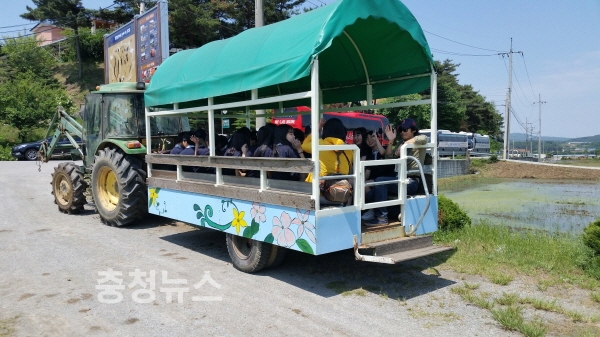 농촌체험관광에 나선 오성중학교 학생들과 계룡시 주부체험단은 문당마을에서 농기계인 트랙터를 이용하여 마을 풍경과 농촌 정취를 느낄 수 있는 동네한바퀴 체험과 염색체험 그리고 빵 만들기 등을 통해 농촌을 이해하는 소중한 시간을 가졌다.