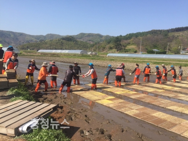 일손돕기(못자리설치 장면)