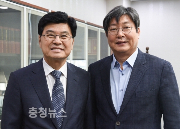 이춘희 세종시장(좌)과 이춘석 사무총장(우)