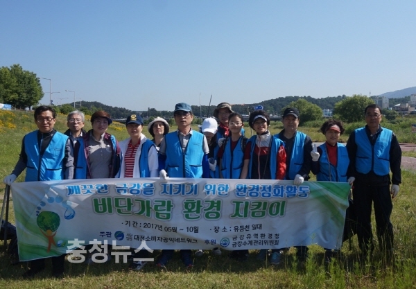 (사)대전소비자공익네트워크(회장 도정자)는 금강유역환경(청장 이경용)후원으로 27~28일 양일간 유등천 일대(삼천교다리)에서 비담가람 환경지킴이 30여명이 참여한 가운데 하천 환경정화 활동을 펼쳤다.