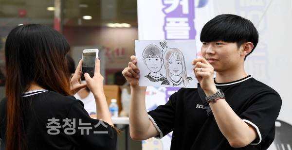 이날 홍명프리존 1층에 마련된 커플체험존에서는 커플들을 위한 다양한 이벤트가 펼쳐졌다. 커플들은 커플 캐리커쳐, 추억과 낭만이 있는 나만의 맛집을 찾아 인증샷을 남기고 SNS에 올리는 등 다양한 미션을 수행하며 이 거리의 숨은 매력을 공유했다.