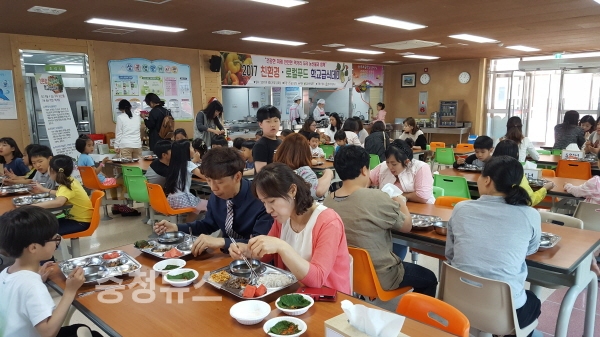 충남 금산군과 상곡초는 지난 26일 상곡초등학교에서 학생, 학부모, 교직원 등 100여명이 참여한 가운데 친환경·로컬푸드 학교급식데이 행사를 개최했다.