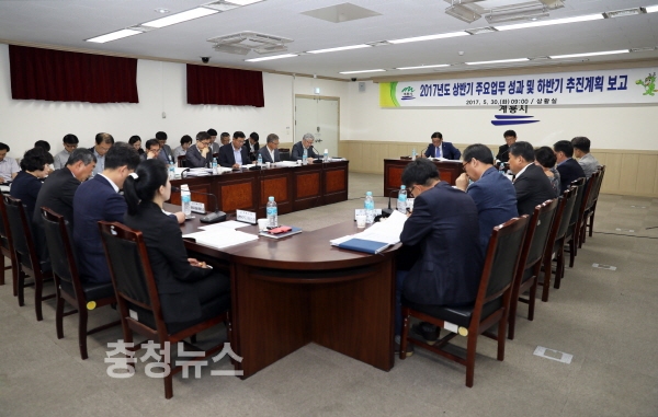 충남 계룡시(시장 최홍묵)는 30일 시청 상황실에서 최홍묵 시장을 비롯한 부시장, 실·과·소장, 팀장급 공무원 등이 참석한 가운데 2017년도 상반기 주요업무 성과 및 하반기 추진계획 보고회를 개최했다.