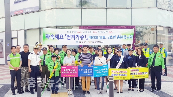 이날 캠페인에는 유성구와 유성경찰서, 모범운전자회, 녹색교통봉사대연합회 등 80여명이 참여했다.