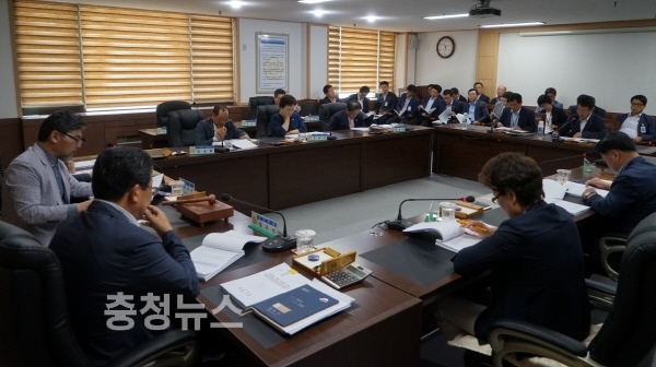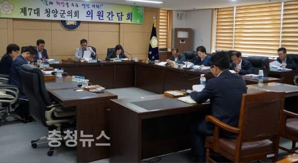 청양군의회(의장 이기성) 30일 산업건설위원회 회의실에서 의원 간담회가 열렸다.