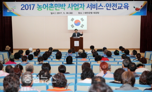 충남 태안군이 편안하고 깨끗한 관광지 이미지 제고와 안전사고 예방을 위해 농어촌민박 사업자를 대상으로 교육을 실시했다.