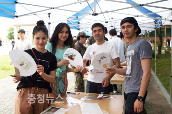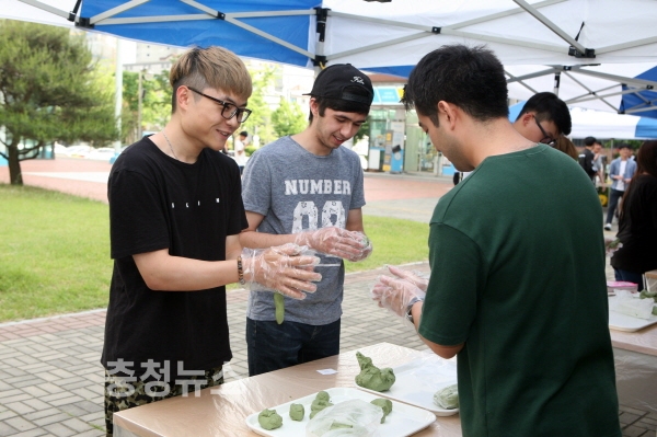 이날 단오 문화체험 행사장에서는 외국인 유학생들이 단연 눈에 띄었다. 이들은 한국인 학생들과 함께 수리취떡을 만들고 부채에 그림을 그려보면서 한국의 전통 문화를 마음껏 즐기는 모습이었다.